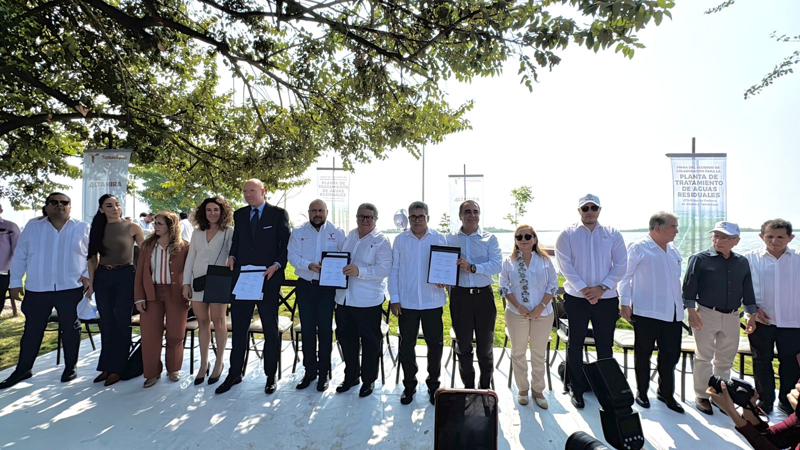 En un acto sin precedentes en beneficio del saneamiento ambiental del municipio, el alcalde Dr. Armando Martínez Manríquez, acompañado por su esposa, la presidenta del DIF Altamira, C.P. Rosa Irma Luque Pérez, encabezó la firma del acuerdo de colaboración para la construcción de la Planta de Tratamiento de Aguas Residuales (PTAR) del sector Pedrera. El evento tuvo como escenario la Isla de la Esperanza, en la Laguna de Champayán, donde autoridades municipales, estatales y representantes empresariales refrendaron su compromiso con el desarrollo sustentable de la región. “Hoy realizamos, junto a…