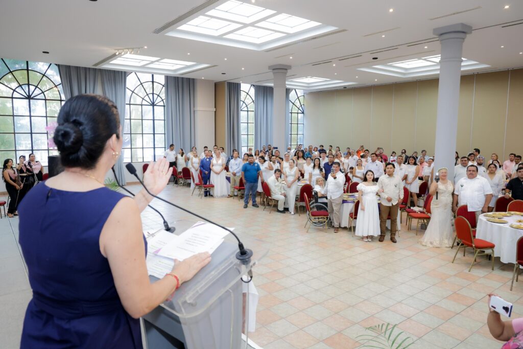 En su mensaje la Alcaldesa, hizo un reconocimiento a la labor que el DIF municipal realizó para que las 85 parejas consolidaran su unión en legítimo matrimonio.